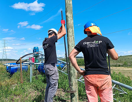 Realizamos el tendido de lineas aéreas y subterráneas en baja tensión para energizar bombas de agua y sistemas de riego, galpones, viviendas, etc.
